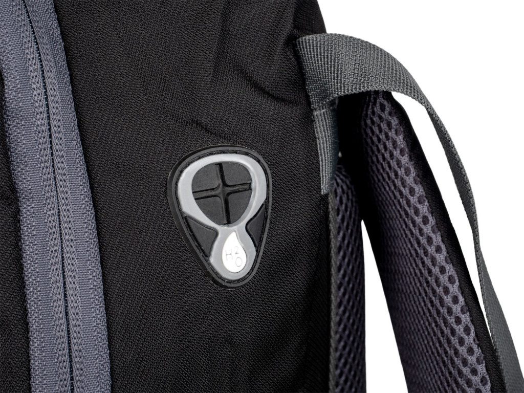 A hátizsák felső része tartós OXFORD 210D anyagból készült, vízlepergető kezeléssel. Ezért alkalmas rosszabb időjárásra is. A belső zsebek és rekeszek könnyű 190T poliészterből készülnek.