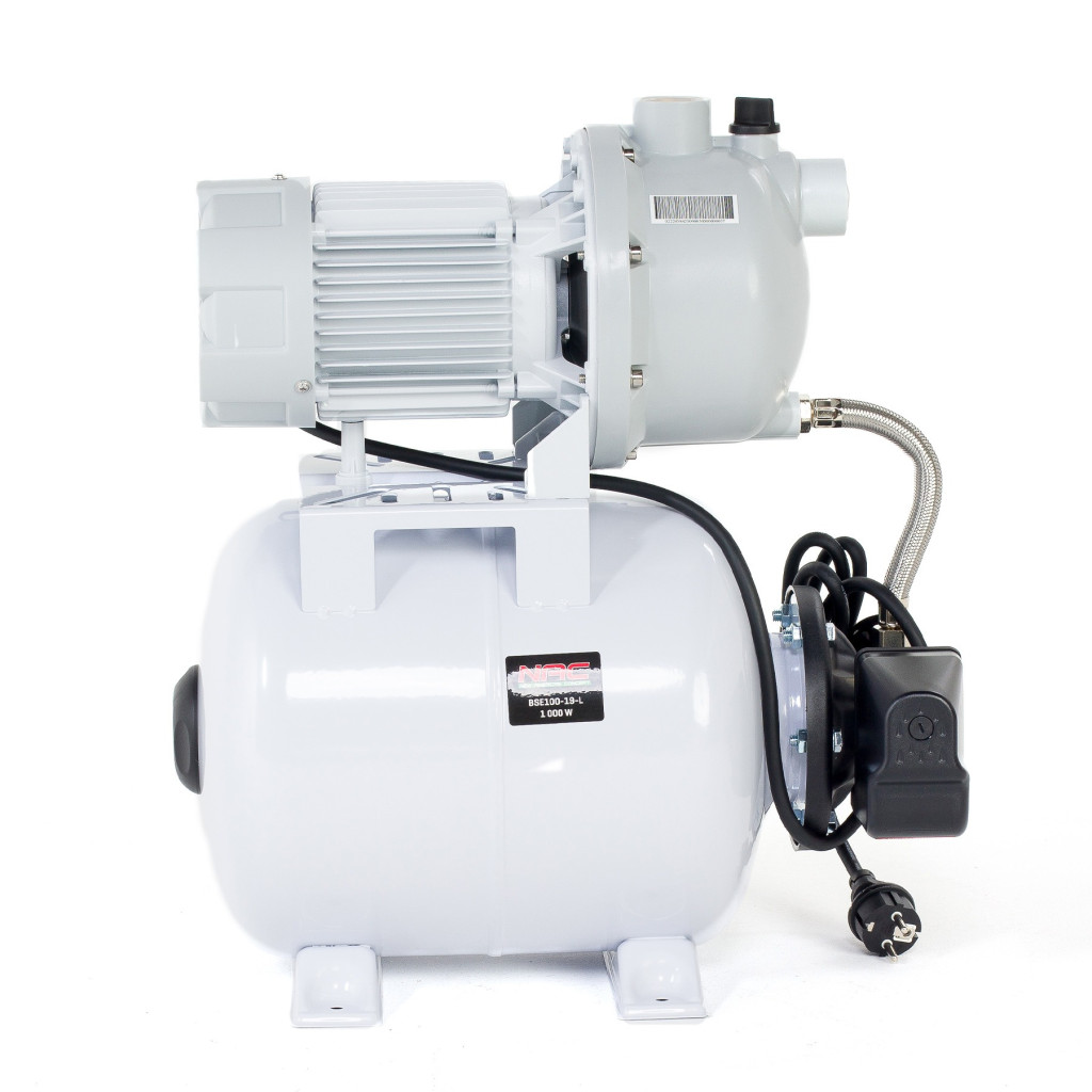 Szüksége van arra, hogy rendszeresen nyomás alatt szivattyúzzon vizet a kertjében? Válassza a NAC BSE100-19-L házi vízművet erős, 1 000 W teljesítményű elektromos motorral és 19 literes tartállyal. Ez a kerti hidrofor megbízhatóan biztosítja a nyomás alatt lévő vízellátást öntözéshez vagy víz szivattyúzásához mély kutakból, tavakból, medencékből, esővízgyűjtőkből és egyéb forrásokból. Akár 4 500 liter vizet is képes átszivattyúzni óránként, és akár 45 méteres magasságba is képes feljuttatni. A munkanyomás 1,4–2,8 bar, és akár 8 méter mélységből is képes vizet felszívni.