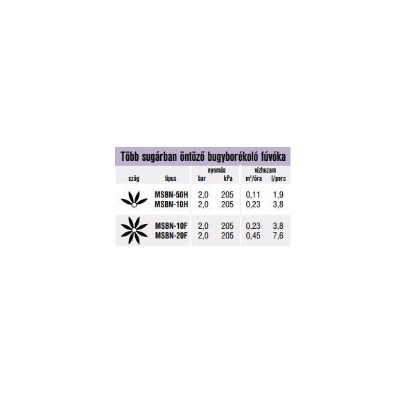 - kijuttatott vízmennyiség (2 bár nyomás esetén): 7,6 l/perc