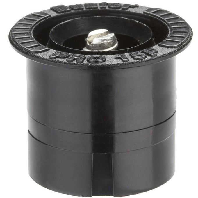 A Hunter PRO-15F típusú fekete spray fúvóka 3,4-4,6 méter között, 360°-ban képes öntözni.
