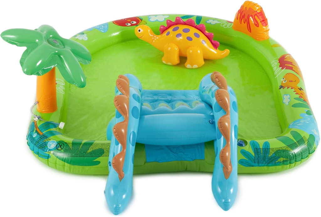 Az Intex 57166 Dinosaur medence játszóközpont 2 éves kortól alkalmas gyermekek számára. Tartalmaz egy csúszdát és számos egyéb játékelemet. A medence űrtartalma 143 liter, a medence alján egy leeresztő dugó található.