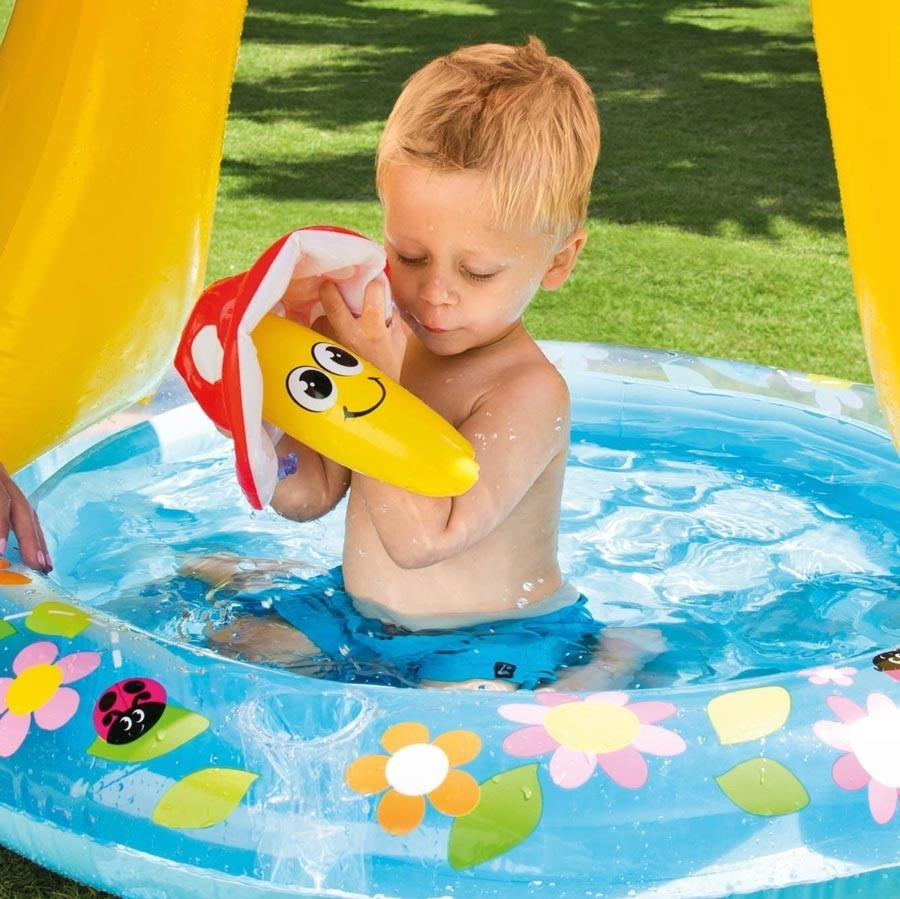 1-3 éves korig ajánlott a termék használata. - Könnyen felfújható, puha "padlóval" - Gomba formájú, fedett pancsoló - 1 db felfújható, kicsi játékgomba - Előtesztelt, tartós vinil anyag - Öntapadós javítófolttal - Méretek: 102 cm x 89cm - A termék súlya (csomagolt állapotban) 9,1 kg