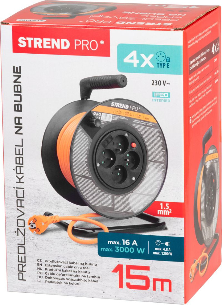 • 1 db Strend Pro DG-FB04, 15 m-es kábel-dobos hosszabbító