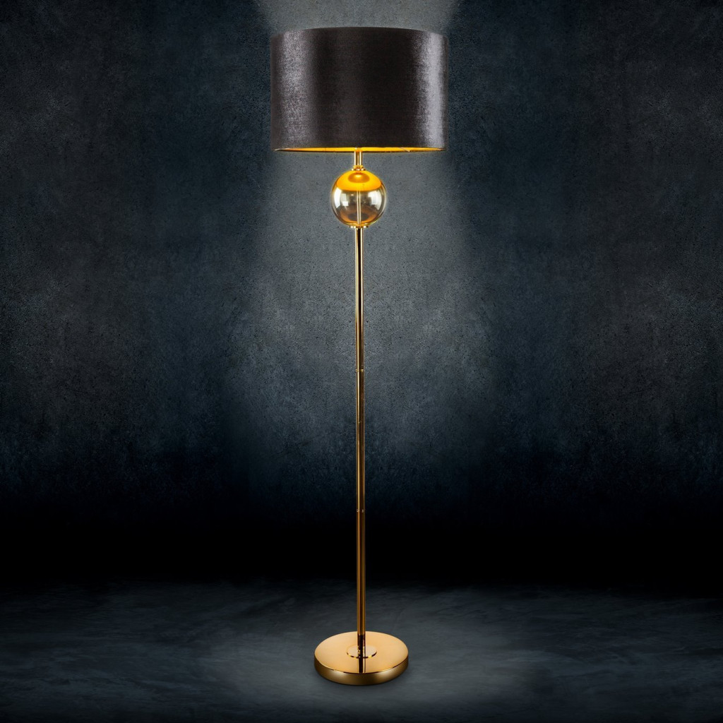 Kaja 02 állólámpa bársony búrával Fekete/arany 43x157 cm