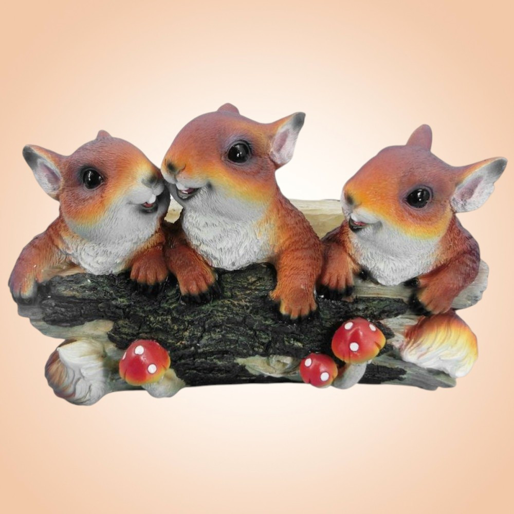 Ez a bájos kerti dísz egyszerre varázsol meghitt, vidám hangulatot és természetes részletességet a környezetedbe. A polirezin alapanyag tartós, fagy- és UV-álló, így nem fakul ki a napsütésben, és nem repedezik meg a hideg hónapokban. Méretének köszönhetően látványos, mégis könnyen elhelyezhető a fűben, kavicságyon vagy a kerti tó partján. A gondosan kézzel festett árnyalatok élethű textúrát kölcsönöznek, amely megidézi az erdei séták meghittségét bármely évszakban.