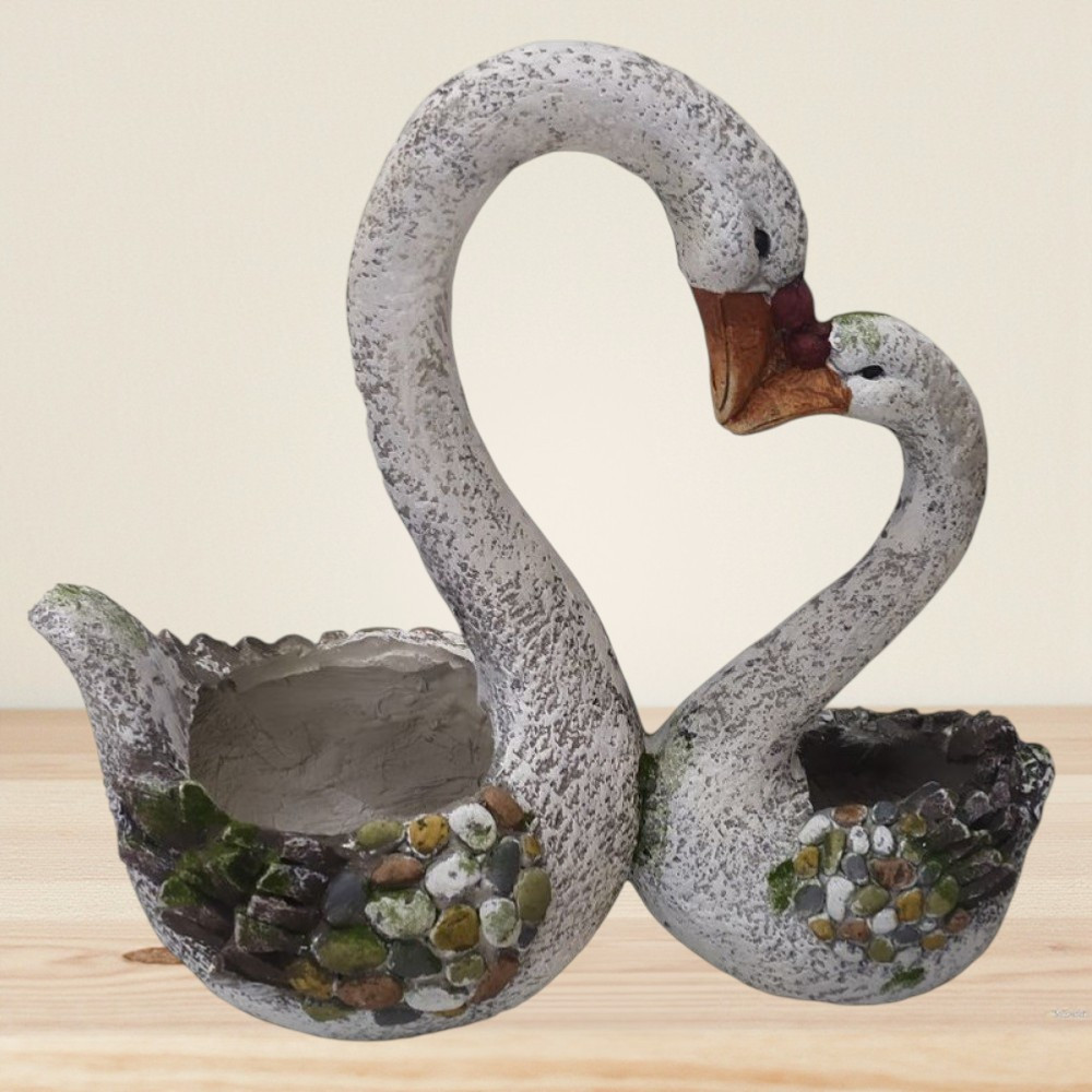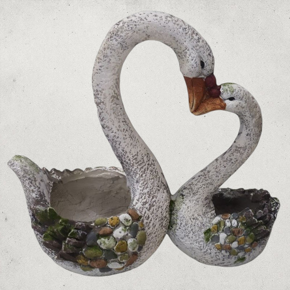 Az elegáns hattyúpár szív alakot formáló nyaka azonnal meleg, szeretetteljes atmoszférát teremt. A magnézia szerkezet jól tűri a hőingadozást, ezért télen sem kell elpakolnod. 3,2 kg-os súlyának köszönhetően a szél nem borítja fel, mégis könnyen mozdítható. A beépített ültetőrész extra kreatív lehetőséget kínál: a virágzó növény és a romantikus szobor együtt különleges látványt nyújt.