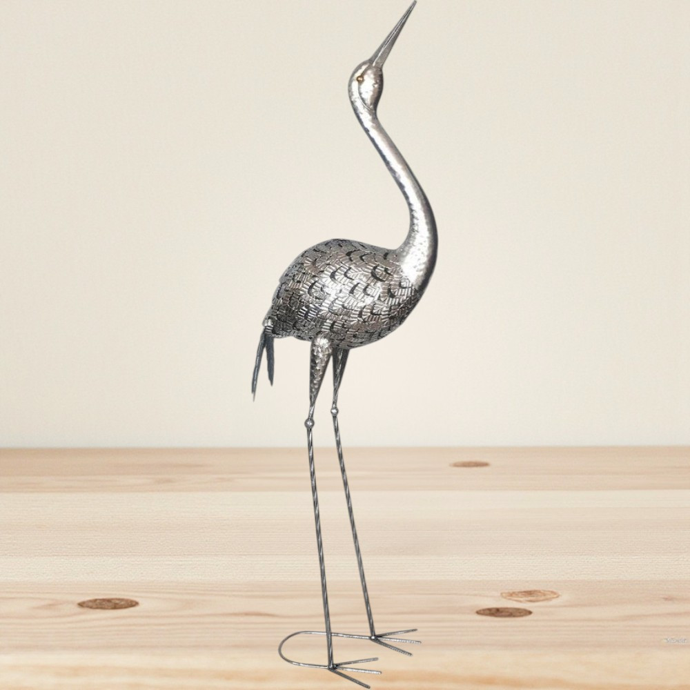 Ez a kecses fém daru egyszerre elegáns szobor és tartós kerti dekoráció. Könnyű, mindössze 1,34 kg-os súlya révén egy mozdulattal áthelyezheted, mégis erős konstrukciója bírja az esőt, a szelet és a napfényt. A kézzel kalapált tollminták és a karcsú, ívelt nyak természetes hatást keltenek, ezzel harmonikusan illeszkedik növények, kerti tavak vagy modern belső terek közé. Karbantartást alig igényel, mégis értékes, stílusos fókuszpontot teremt.
