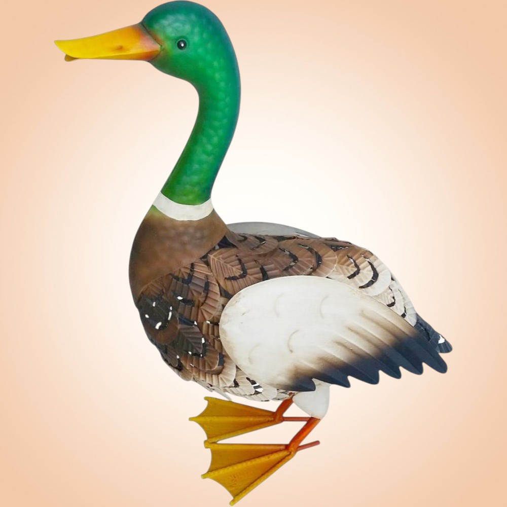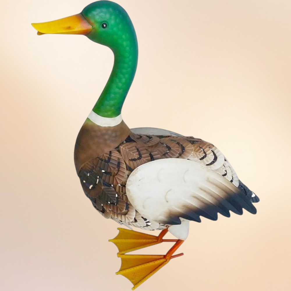 A MagicHome Mecco kacsa dekoráció életre kelti a kert vagy a nappali hangulatát. A 37 × 16,5 × 47 cm-es, mindössze 0,95 kg tömegű fém figura valósághű színátmenetekkel és finom tollmintákkal hódít. A zöld fej, a barna mell, a fehér szárnyak és a sárga csőr-láb kombinációja igazi vadkacsa megjelenést idéz. Időjárásálló kivitele révén bátran elhelyezheted tóparton, teraszon vagy virágágyásban, de ugyanúgy díszítheti a nappali komódját is.