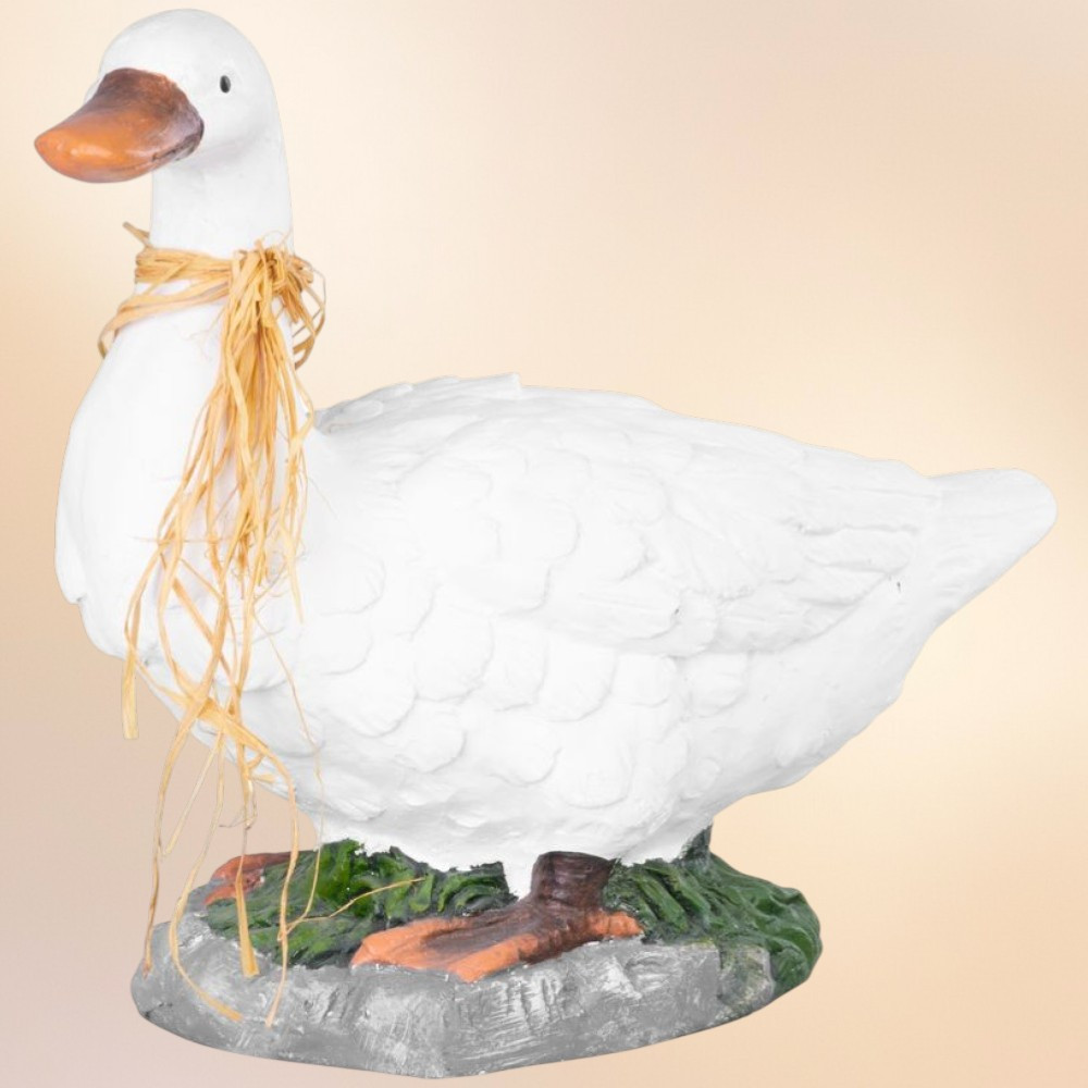 Visszafogott fehér színével bármilyen növényágyásba harmonikusan illeszkedik, miközben a természet ihlette formavilág vidám frissességet kölcsönöz a környezetnek. Kerámia anyaga ellenáll az időjárási viszontagságoknak, így egész évben díszítheted vele udvarodat. A kézzel festett részletek hiteles megjelenést biztosítanak, így a látogatók első pillantásra igazi ludat vélhetnek felfedezni a zöldben.