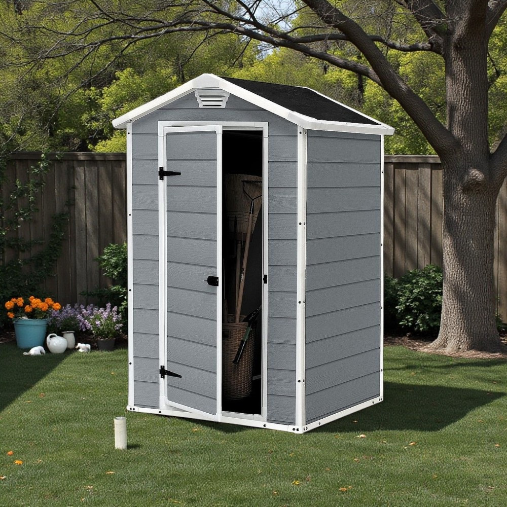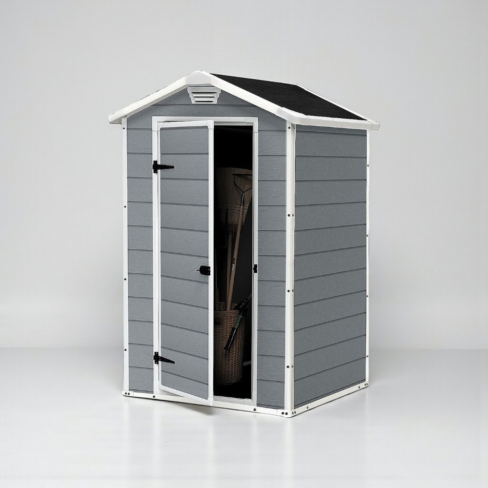 Adj rendezett, stílusos megjelenést kertednek a Keter MANOR 4x3 házikóval! A 128×94 cm-es alapterület ideális a fűnyíró, kerti szerszámok és egyéb kiegészítők számára, miközben a 196 cm-es belmagasság kényelmes mozgásteret nyújt. A szürke oldalfalak és fehér keretek modern, letisztult külsőt adnak, az UV-álló, víz- és hóálló műanyag pedig hosszú éveken át ellenáll az időjárásnak. A fémbetétes váz stabilitást, a lakatolható ajtó biztonságot garantál.