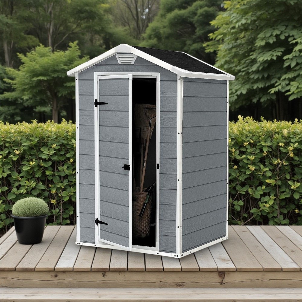 Beépített szellőzőpanelje folyamatos légáramlást biztosít, így elkerülhető a párásodás és a penészesedés. A karbantartásmentes műanyag felület nem igényel festést, nem rozsdásodik, nem vetemedik, csupán egy gyors lemosásra van szükség. Keskeny kialakítása a kisebb kertekben is elfér, mégis meglepően tágas belsőt kínál. Az előre gyártott paneleknek köszönhetően az összeszerelés egyszerű, gyors és szerszámkímélő.