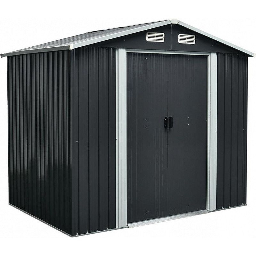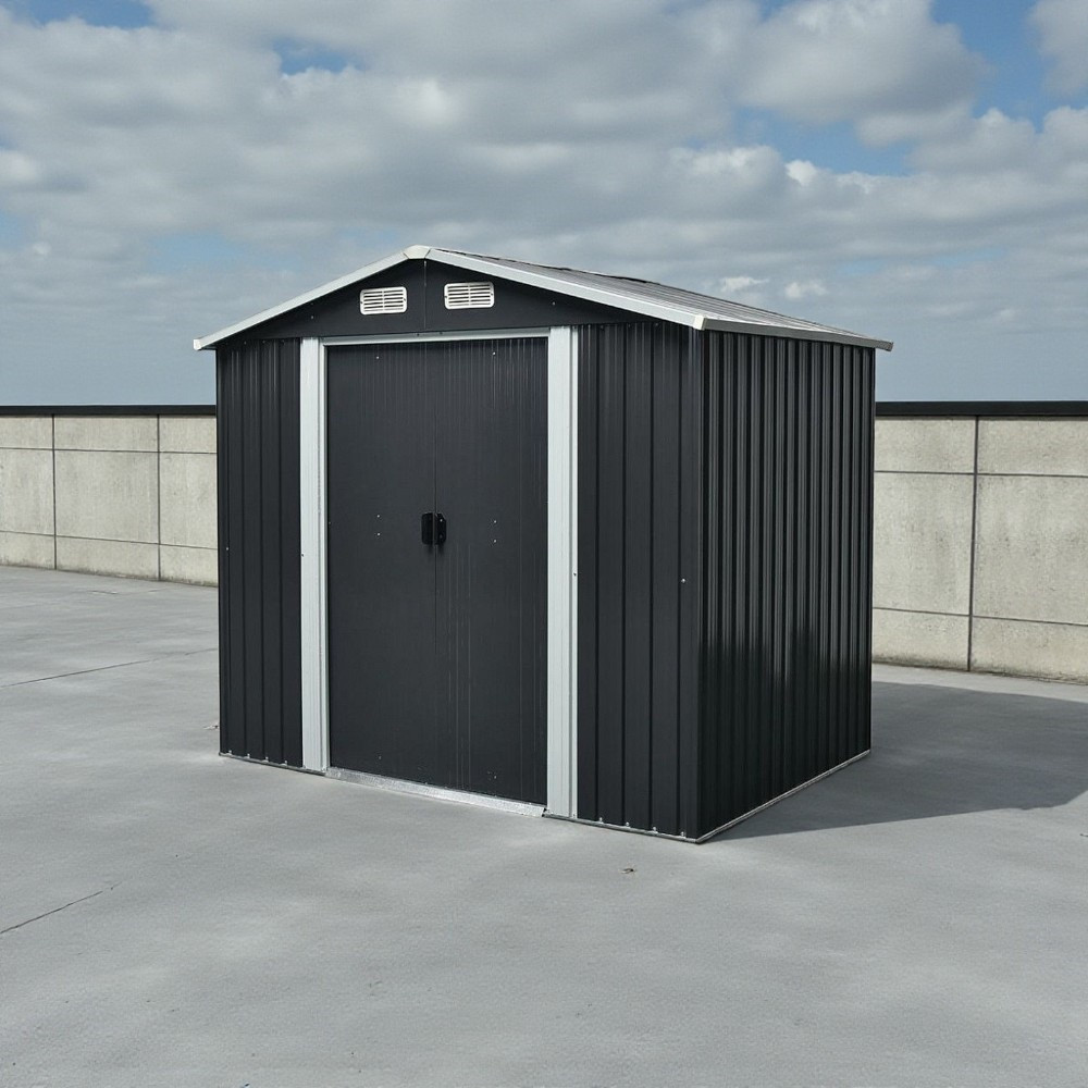 Az extra vastag acéllemezek és a galvanizált merevítés hosszú távú védelmet nyújt, így nem kell aggódnod a rozsda vagy a sérülések miatt. A 105 × 170 cm-es dupla tolóajtó nagy nyílást biztosít, így könnyedén befér még a szélesebb kerti gép is. Az antracit szín modern megjelenést kölcsönöz, bármilyen kertben elegáns látványt teremt. A négy szellőző biztosítja a megfelelő levegőáramlást, ami csökkenti a párásodást és növeli a tárolt tárgyak élettartamát.