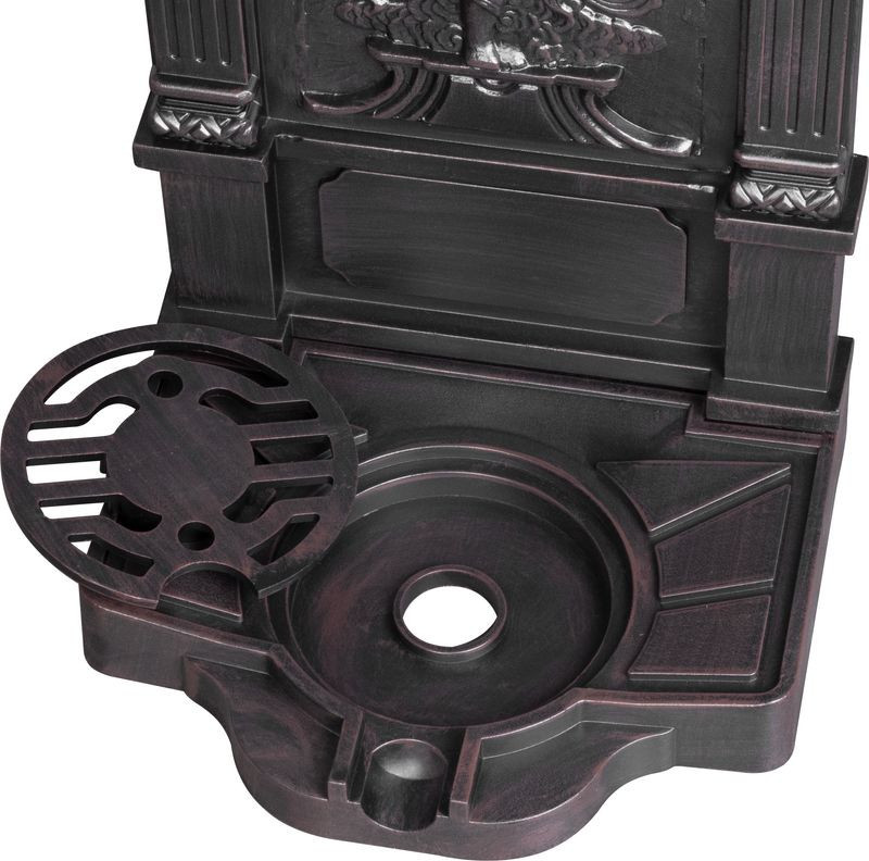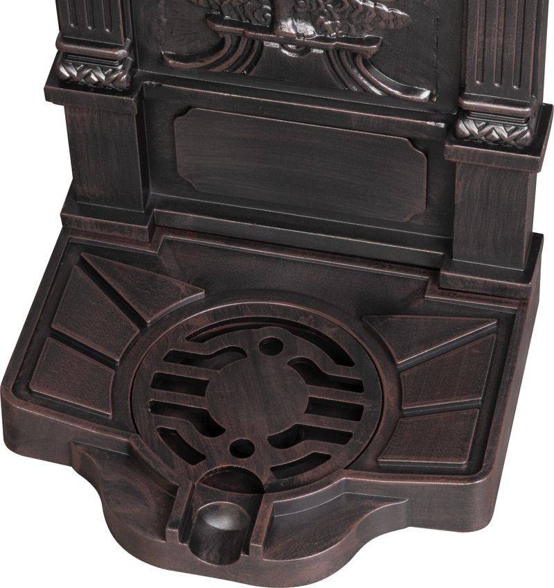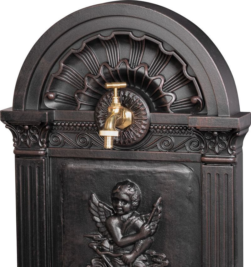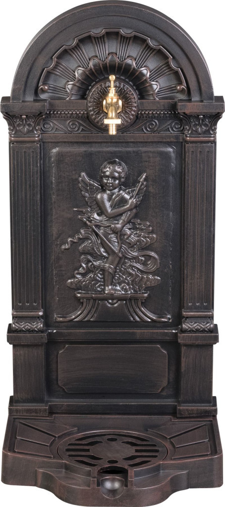 Varázsolj romantikus kúthangulatot kertedbe a Strend Pro Garden LT-DC044 kerti mosdóval! A 40 × 35 × 83 cm-es, 6,87 kg-os alumínium test barna, antikolt felülete és a bájos angyaldombormű azonnal magára vonzza a tekintetet. A felső, rézszínű csap kényelmes vízvételezést kínál, az alsó, rácsos kifolyótálca pedig tisztán tartja a teret. Időjárásálló kialakításának hála teraszon, udvaron vagy a ház falán is stílusos, tartós vízforrást teremt.