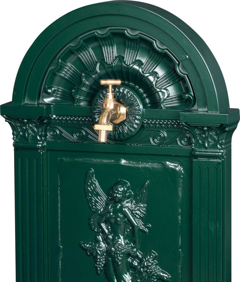 • Elegáns sötétzöld felület aranyszínű csappal – látványos kerti fókuszpont