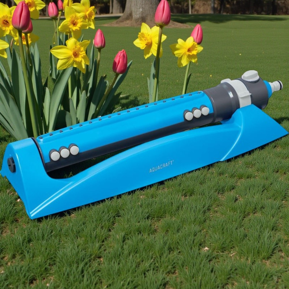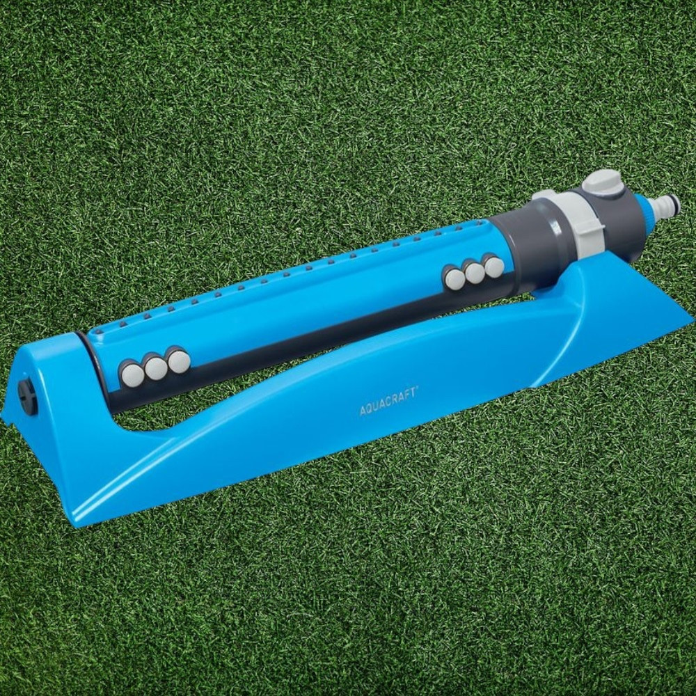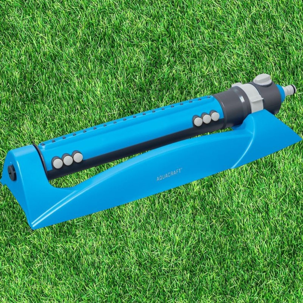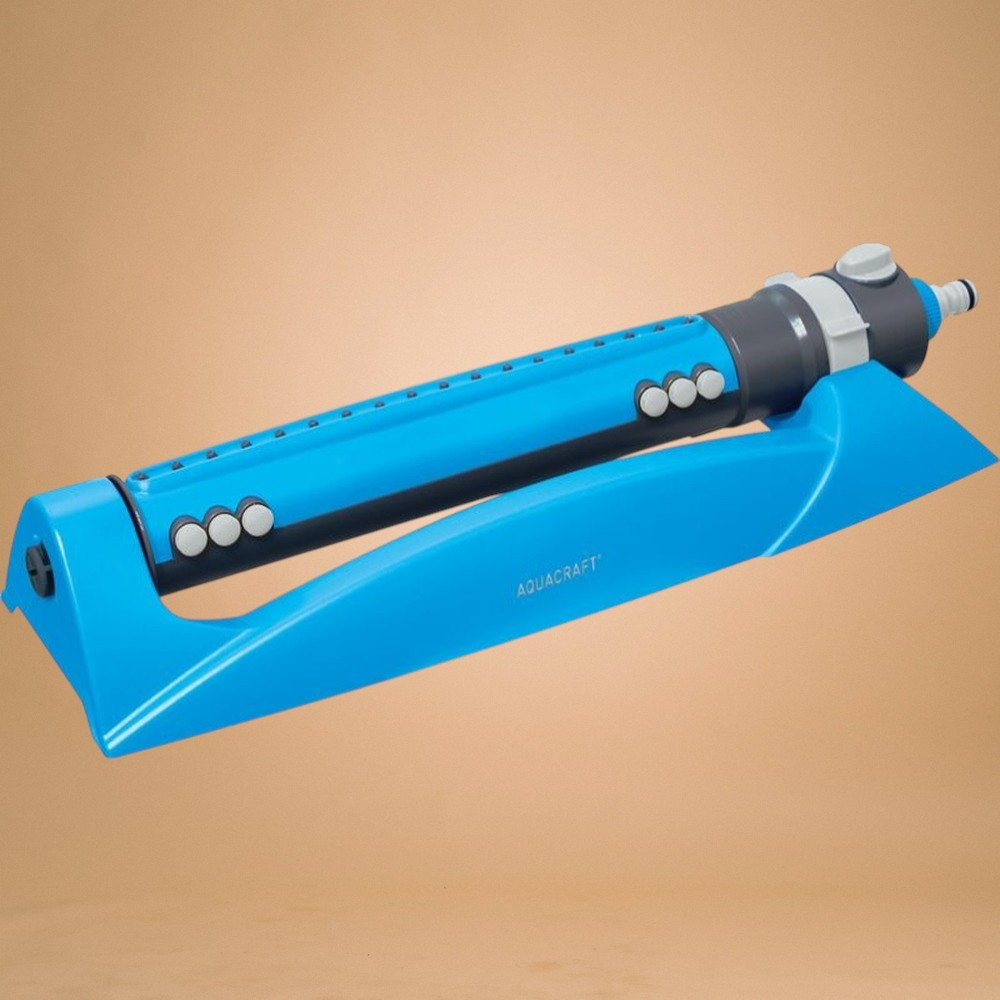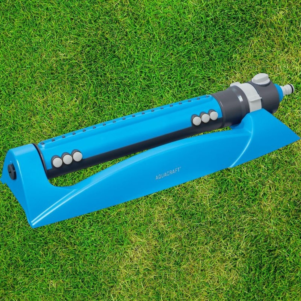 Kerti locsolófej, Aquacraft 280110 Prémium, kék, oszcilláló, 18 fúvóka, állítható áramlás, állítható szélesség, maximum 340 m2 öntözési terület