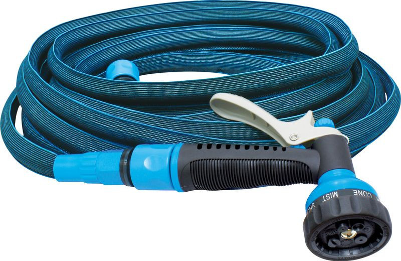 Mindössze 1,33 kg-os tömege révén hosszabb idő után sem fárasztja a kart, a bordázott külső pedig megelőzi a megtörést és a csavarodást. A mellékelt szórópisztoly hét változtatható vízsugara – finom köd, lapos permet, zuhany, teljes sugár, kúp, pont és erőteljes szórás – minden feladatra felkészít a palánták kímélésétől a terasz letakarításáig. A gumírozott markolat csúszásmentes, a rögzítőkar pedig lehetővé teszi a folyamatos vízáramot, így kevesebbet kell a karral bíbelődnöd. A gyorscsatlakozók pillanatok alatt a csapra pattannak, ezért azonnal munkára foghatod a tömlőt.