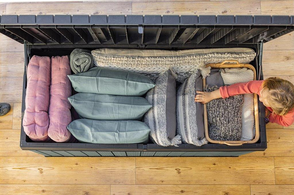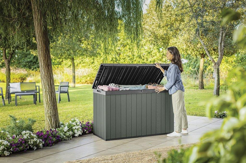 Bővítse ki a tárhelyet kertjében, teraszán vagy pergolájában. A 662 l űrtartalmú Keter Darwin kültéri kerti dobozban bőségesen elférnek a kerti szerszámok, párnák, takarók, sportfelszerelések és egyéb különféle kiegészítők.