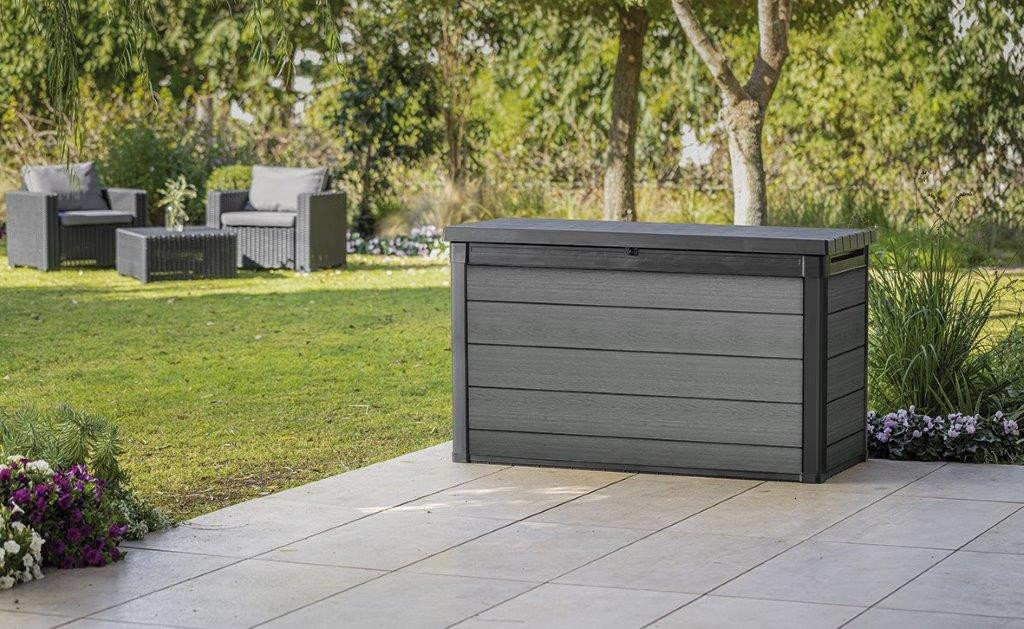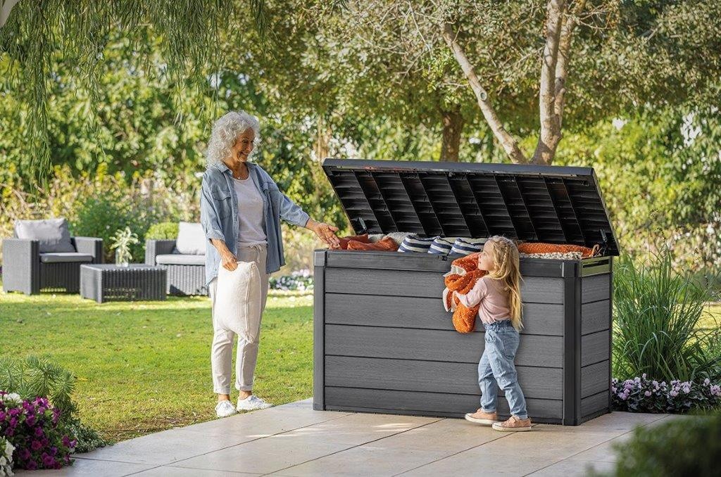 A kerti doboz hidraulikus dugattyúkkal van felszerelve a sima nyitás érdekében. Az oldalsó fogantyúk megkönnyítik a kezelést. A doboz technológiailag fejlett Evotech anyagból készült. Ezáltal a műanyagok legjobb tulajdonságaival rendelkezik, így ellenáll az UV sugárzásnak és az extrém csapadéknak is. Ráadásul nincs rothadás, rozsda, hámló festék.