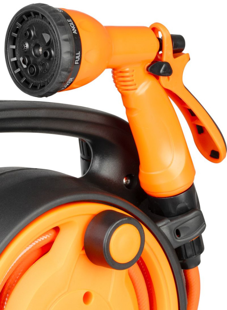 Egyszerre kapod meg a kompakt tárolást és a változatos locsolást: a zárt dob védi a csövet a napsütéstől, a pisztoly nyolc féle szórásképe a zsenge palántától a dús sövényig mindent lefed. A gyorscsatlakozók pillanatok alatt a csapra pattannak, a hat bar nyomásállóság pedig biztosítja a folyamatos, egyenletes vízáramot. Ráadásul csupán két kilogramm körüli súlya miatt könnyű átvinni a kert egyik végéből a másikba.