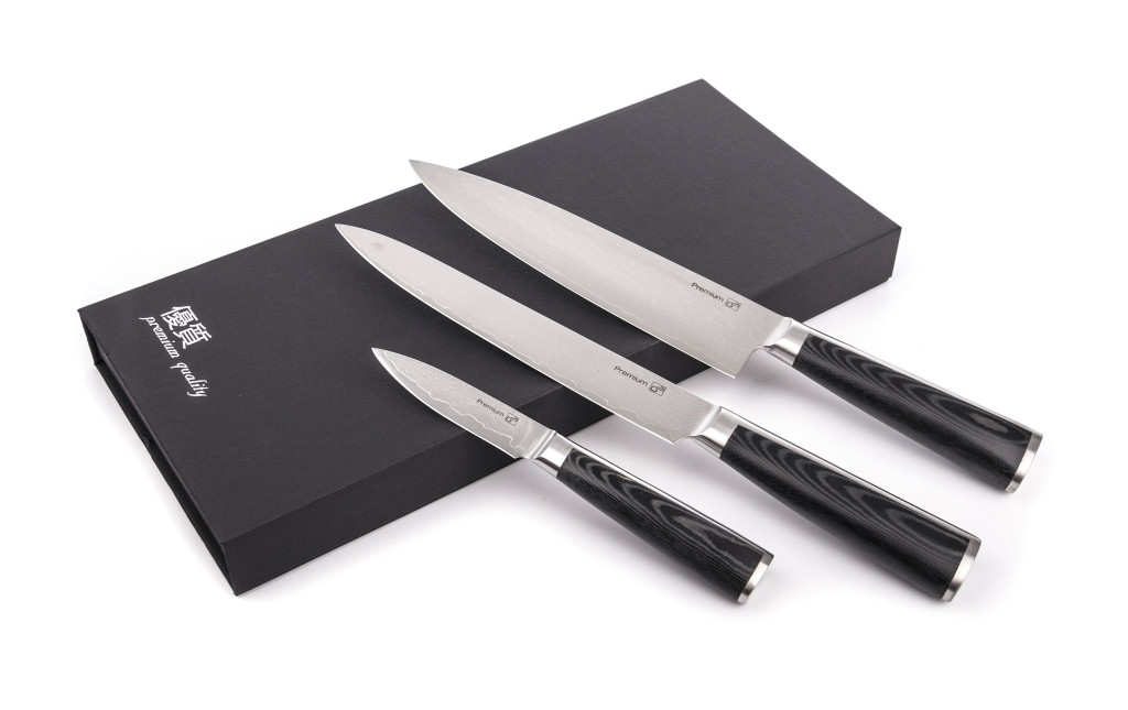 - Modell: Damascus Premium késkészlet 3 db bambusztartóban
