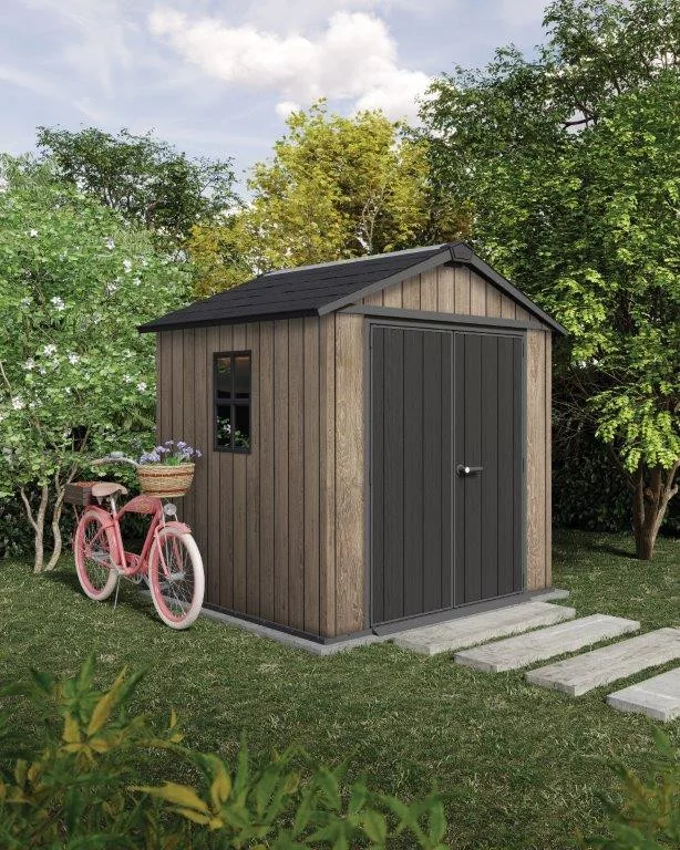 A Keter speciális DECOCOAT anyagot használ, amely hűen utánozza a természetes fa megjelenését, de azzal ellentétben nem igényel karbantartást. Teljesen ellenáll az UV-sugárzásnak, az extrém időjárási ingadozásoknak, és évek múlva sem veszíti el megjelenését. Elég időnként nedves ruhával áttörölni.