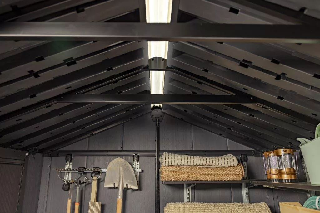 Az acélmerevített tető és a padlópanel 150 kg/m² teherbírása ideálissá teszi a házat nehezebb tárgyak, például fűnyírók, kerti bútorok tárolására. A ház akár 145 km/h szélnek is ellenáll megfelelő rögzítés mellett.