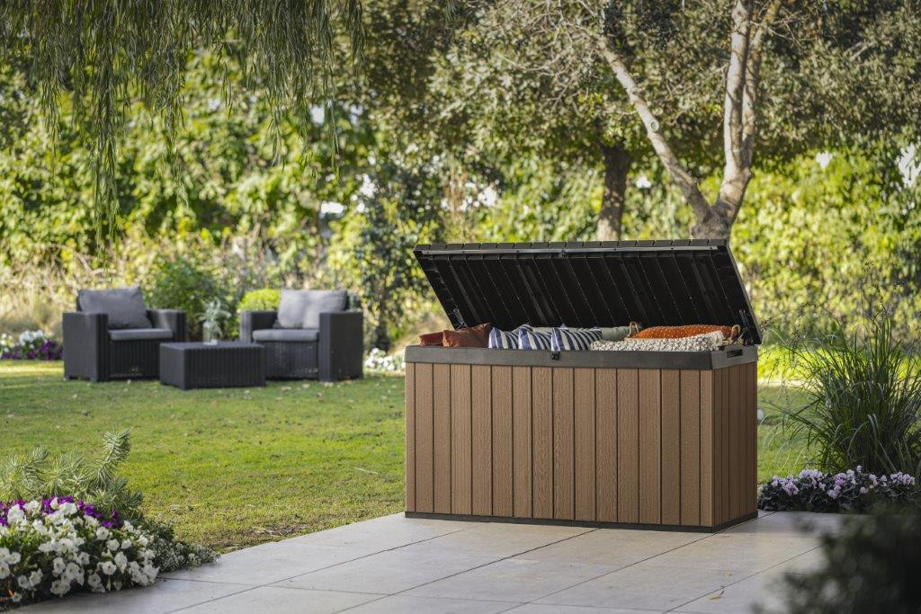 Bővítse ki a tárolóhelyet a kertben, teraszon vagy pergolán. Kültéri kerti doboz Az 570 l kapacitású Keter Darwin elegendő helyet biztosít a kerti szerszámok, párnák, takarók, sportfelszerelések és egyéb kiegészítők számára.