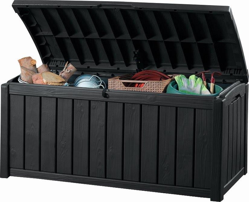 • A Keter Glenwood praktikus tárolóbox 390 liter űrtartalommal rendelkezik takarók, párnák vagy különféle kerti szerszámok és eszközök számára.