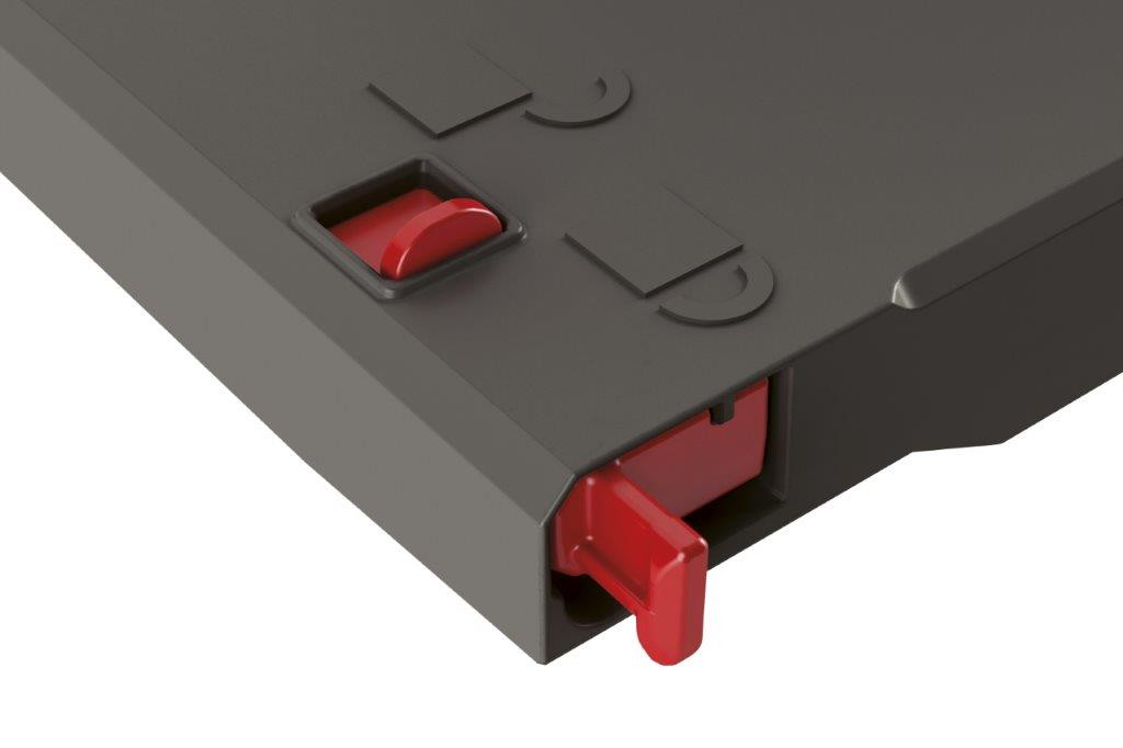 A szekrény Assisted Opening System (AOS) rendszerrel és fém zsanérokkal van felszerelve, így ajtajai simán nyithatók és biztonságosan záródnak. A lakathelyeknek köszönhetően lakattal lezárható, ezáltal megóvja a benne tárolt tárgyakat. Az ötödik, állítható láb növeli a szerkezet stabilitását.