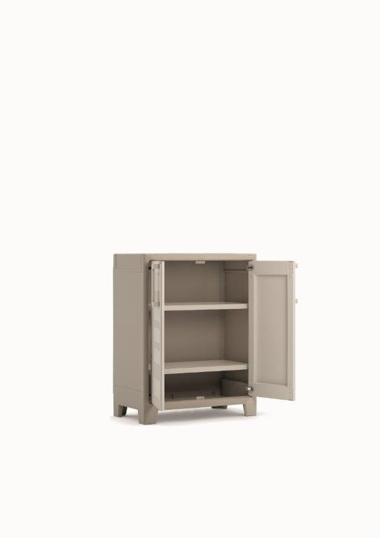 A Gulliver Low alacsony helyiségekhez lett tervezve, miközben praktikus és biztonságos tárolást biztosít. Használhatja otthoni műhelyben, erkélyen vagy kerti házban. A UV-védelemnek és vízálló kialakításnak köszönhetően még mostohább körülmények között is megállja a helyét.