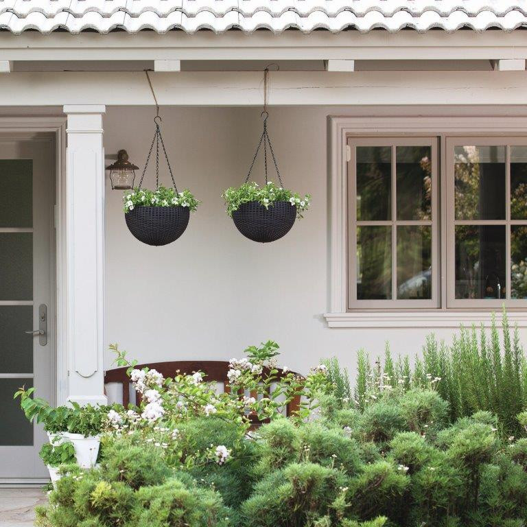 A felfüggeszthető Hanging Sphere virágcserép a Keter márkától természetes rattan szövéshez hasonlít grafitszürke színben. Tökéletesen kiegészíti a környezet modern és hagyományos megjelenését is. A virágok természetesen kiemelkednek benne.