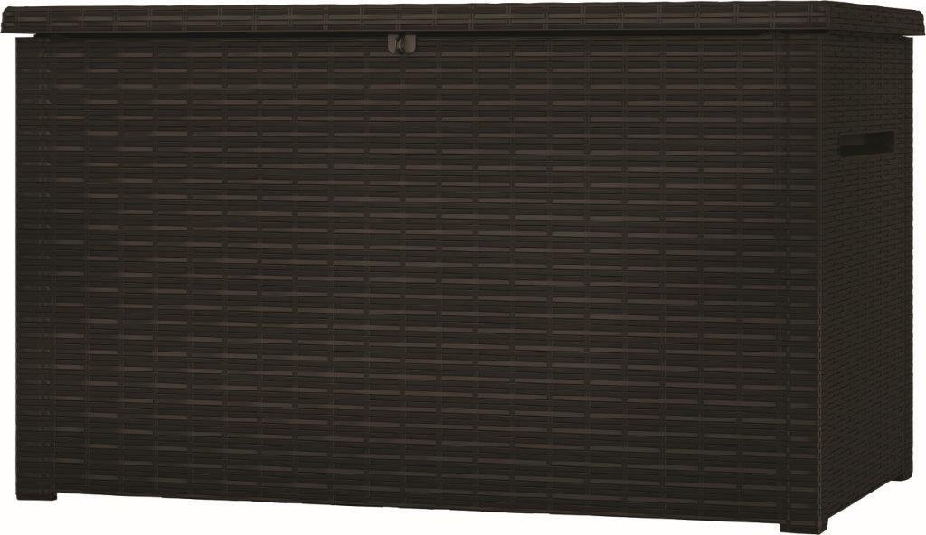 Keter márkájú Java kerti box barna színben 870 liter kapacitással rendelkezik. Kényelmesen tárolhat benne takarókat, párnákat, világítást, vagy például kerti szerszámot. Ráadásul kisasztalként is használhatja (50 kg terhelhetőség).