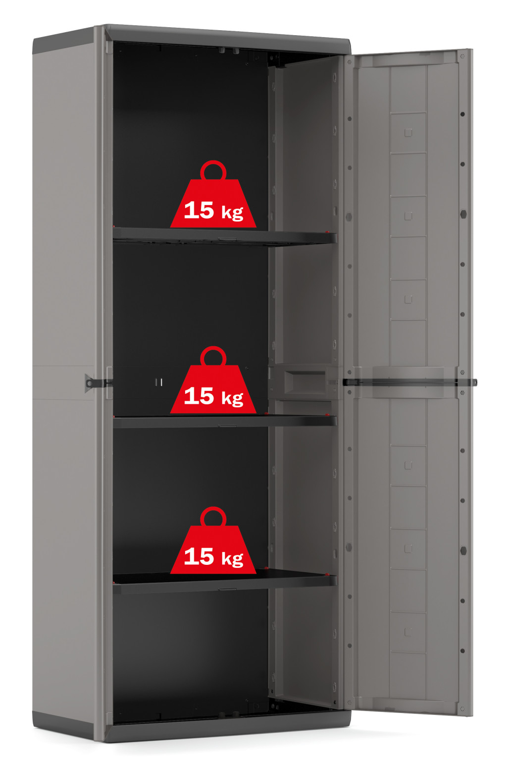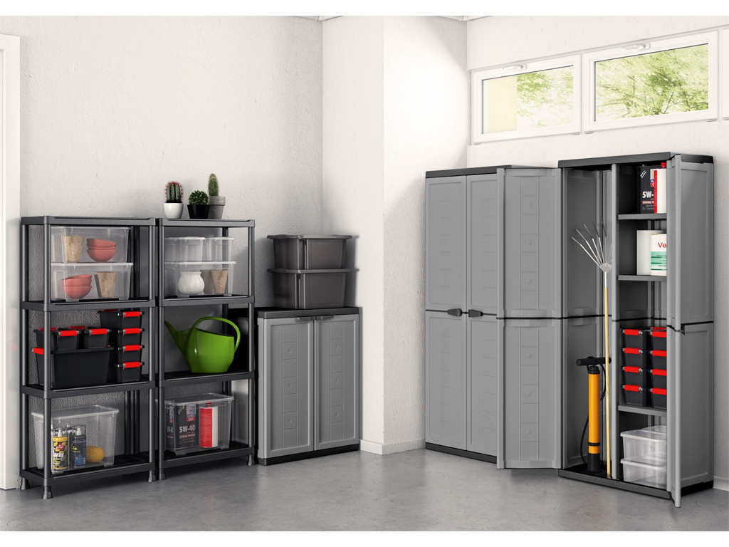 Könnyű, strapabíró és egyszerűen összeszerelhető szekrényt keresel? A olasz gyártmányú Keter Jolly High szekrény szerszám nélküli összeszereléssel, lakatolási lehetőséggel és állítható polcokkal rendelkezik, amelyek egyenként akár 15 kg-ot is elbírnak. A Keter Jolly High műanyag szekrény praktikus tárolási megoldás műhelybe, pincébe vagy háztartásba.