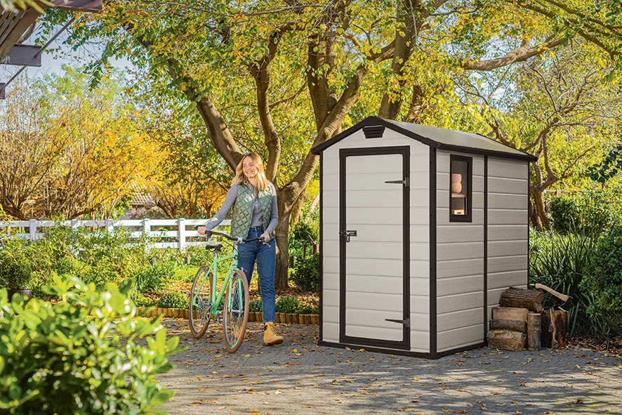 Szerszámok hevernek szanaszét a házban vagy a kertben, és a garázsban már nincs hely? A Manor 4 x 6 kerti ház optimális méretű, és nagyon egyszerűen összeszerelhető. A ház alkalmas kerti szerszámok, sportfelszerelések, medencetechnika és -felszerelés, műhelyszerszámok, valamint grillező felszerelések, beleértve a nagyobb gázgrillek tárolására is.
