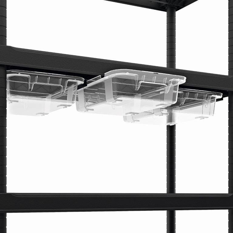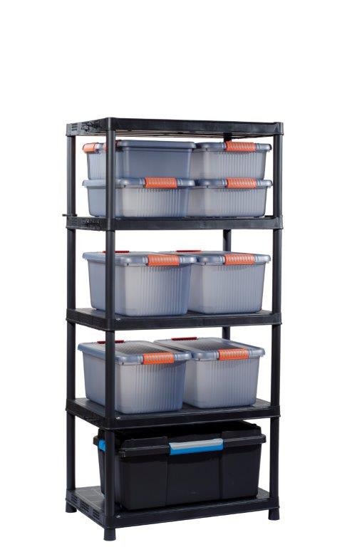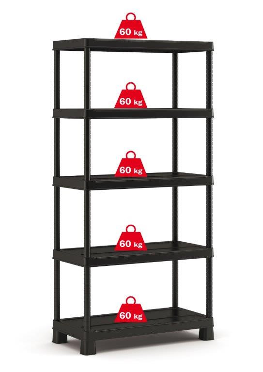 Az állvány 5 polcot tartalmaz extrém teherbírással, amelyek nehezebb tárgyakat is elbírnak. Használható szerszámok és kerti kellékek tárolására, mivel jól jön olyan szerszámok tárolására, amelyek máshol nem férnének el. Az állvány rögzíthető a falhoz a nagyobb stabilitásért. Több tároló tér érdekében az állvány sínekkel van ellátva a Tribac (Scuba) típusú dobozok felfüggesztésére, amelyekben különböző szerszámokat tárolhat. Az univerzális fekete színének köszönhetően minden helységet kiegészít.