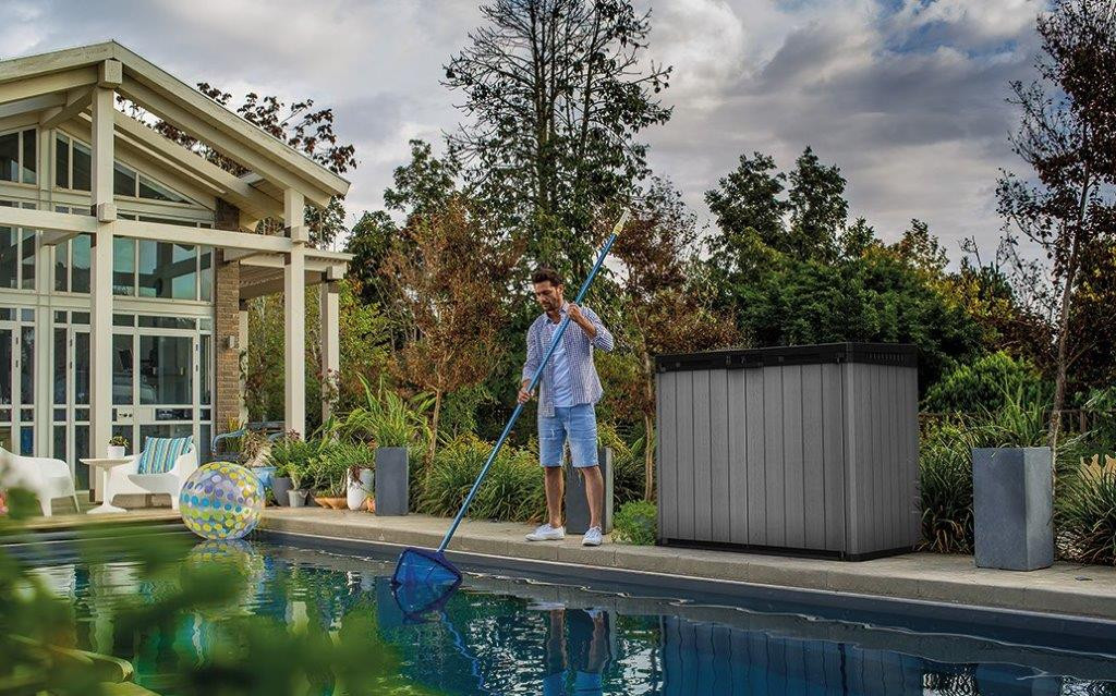 Bővítse tárolóhelyét a kertben, a teraszon vagy a pergolában. A Keter SIO Darwin kültéri kerti tárolódoboz 1 150 l-es űrtartalommal elég helyet biztosít a kerti szerszámok,medencetechnika és -felszerelés, párnák, takarók, sportfelszerelések és egyéb kiegészítők tárolására. A doboz felnyitható fedéllel vagy az elülső kétszárnyú ajtóval nyitható, így könnyen hozzáférhet az elhelyezett tárgyakhoz.
