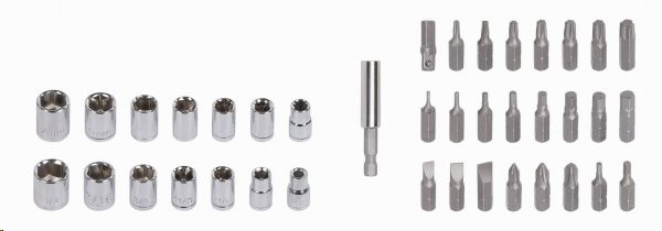 - 23x 1/4 ”-es csavarhúzó bitek: SL5, SL6, SL7, PH1, PH2, PH3, PZ1, PZ2, T10, T15, T20, T25, T27, T30, T40, H1.5, H2, H2.5, H3, H4, H5, H5,5, H6