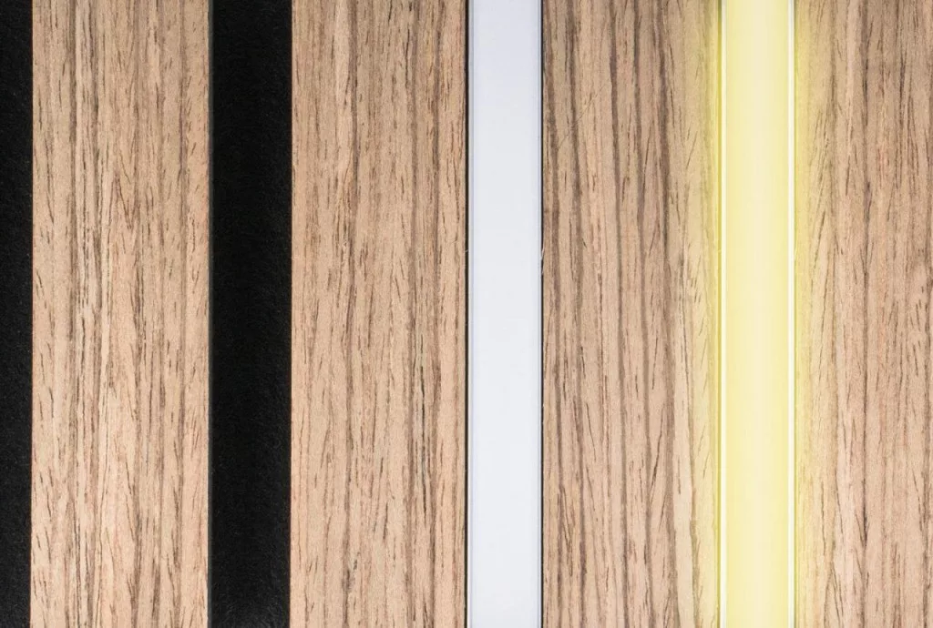 A megfelelően kiválasztott világítás hangulatot teremthet, és kiemelheti a belső részleteket. A LED világítás az akusztikus panelekben vizuális élményt nyújt, emellett jelentősen energiát és pénzt takarít meg. A dizájnos lamellás burkolat és a könnyű profil kombinációja gyönyörű és praktikus design elemet alkot. Nézze meg, milyen előnyei vannak.