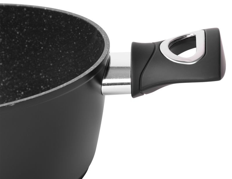 Éld át a profi konyha élményét a MagicHome Black Line 20 cm-es lábasával! 2,1 literes űrtartalma ideális levesekhez, szószokhoz vagy kisebb egytálételekhez, miközben a belső márvány bevonatnak köszönhetően semmi sem ragad le, és a tisztítás gyerekjáték. A 3 mm vastag, indukciós alj gyorsan felhevül és egyenletesen osztja el a hőt, így energiát spórol minden főzésnél. A matt fekete, hőálló külső bevonat modern megjelenést kölcsönöz, a szilikonos, hűvös maradó fogantyúk pedig biztonságos fogást garantálnak.