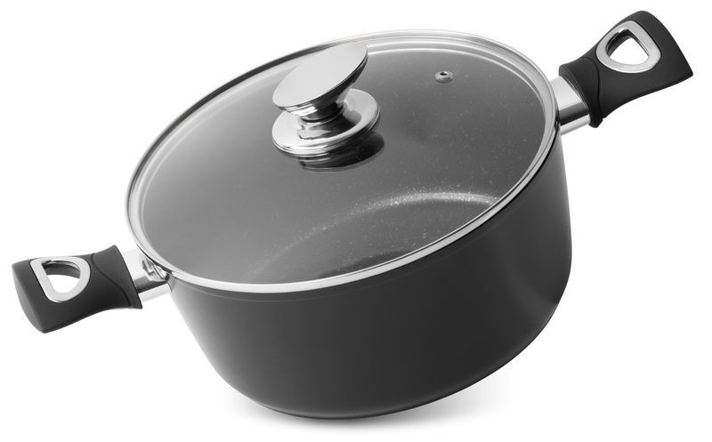 A MagicHome Black Line 24 cm-es lábas 4000 ml űrtartalmával ideális levesek, raguk és tésztaételek elkészítéséhez. Márvány bevonatú belső felülete tapadásmentes, így kevesebb zsiradék is elegendő, a matt fekete, hőálló külső pedig stílusos és tartós. 3 mm-es indukciós aljzata gyorsan felmelegszik, egyenletesen osztja el a hőt, ezáltal energiát spórol. A fedő alatt gyorsabban puhulnak az alapanyagok, a szilikonbevonatú, lángvédős fogantyúk pedig biztonságos fogást adnak.