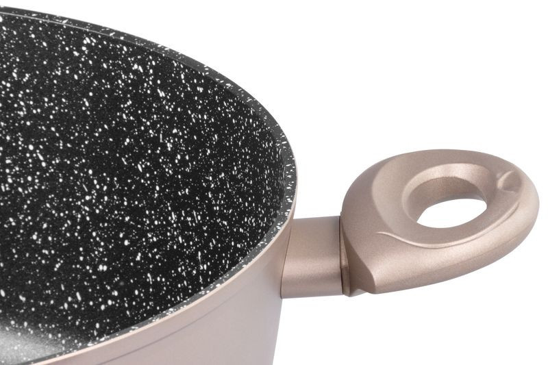 Emeld új szintre a mindennapi főzést a MagicHome Coffee Brown Line 28 cm-es lábassal! Az alumíniumötvözet test gyorsan és egyenletesen melegszik, a belső, két rétegű márvány bevonat pedig megakadályozza az ételek letapadását, így kevesebb zsiradék is elegendő. Az 5,9 literes űrtartalomnak köszönhetően egyszerre készíthetsz levest a családnak vagy ízletes pörköltet a hétvégi vendégseregnek. Matt, kávébarnára színezett hőálló külseje elegáns megjelenést ad a konyhának, az edzett üvegfedőn át pedig folyamatosan ráláthatsz az ételre.