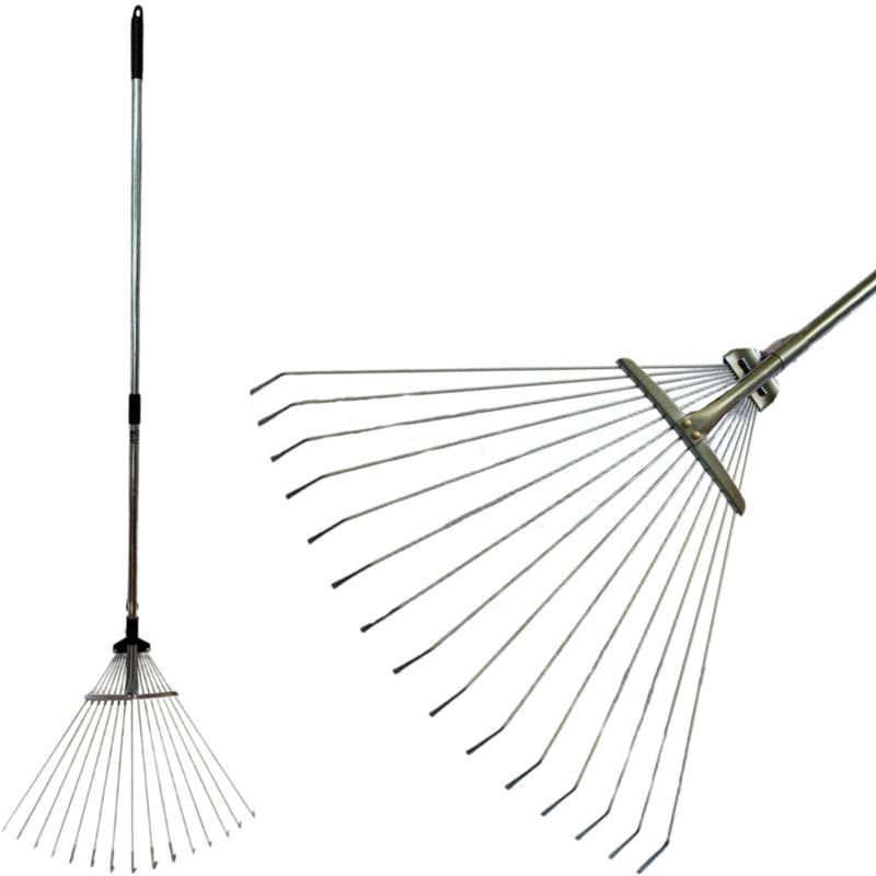 Lombseprű, gereblye, Strend Pro Garden R120, fekete/szürke, 15 fogú, acél fej, fém nyél, 19-45 cm munkaszélesség, 78–158 cm nyél, állítható szélesség, teleszkópos nyél