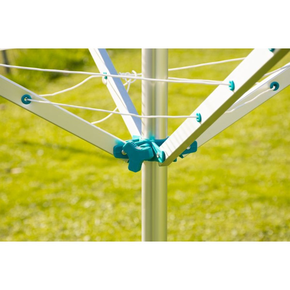 A masszív, rozsdamentes lakkozású fém szerkezet hosszú élettartamot biztosít, míg az innovatív zsinórfeszítő rendszer gondoskodik arról, hogy a szárítózsinórok mindig tökéletesen feszesek legyenek. Ez nemcsak a ruhák gyorsabb száradását segíti elő, hanem megakadályozza a zsinórok elernyedését és csavarodását is. A tágas, 50 méteres szárítási felület akár több adag mosás kényelmes elhelyezésére is elegendő.