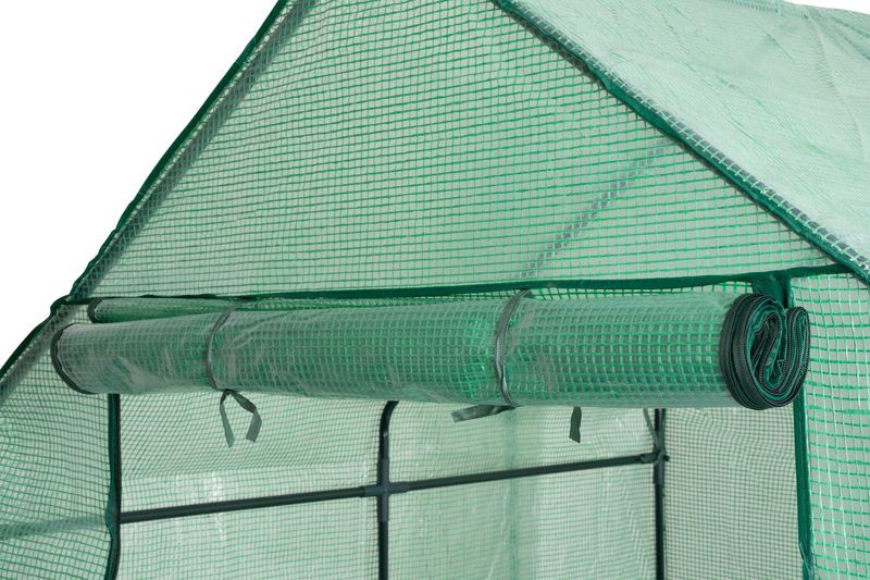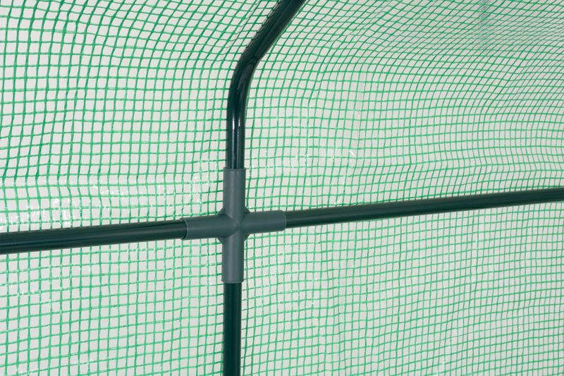 Egyetlen szerkezetben ötvözi a fóliasátor könnyedségét és egy üvegház praktikumát: a fólia alatt gyorsabban melegszik a talaj, így a növények erősebben gyökereznek és korábban termést hoznak. A mindkét oldalon elhelyezett négy polc rendszerezetten tartja az ültetőcserepeket, így egyszerre több száz palántát gondozhatsz anélkül, hogy értékes helyet veszítenél a kertben. A masszív váz és a hálóerősítésű borítás hosszú távú használatot garantál, mégis pillanatok alatt összeszerelhető szerszám nélkül.