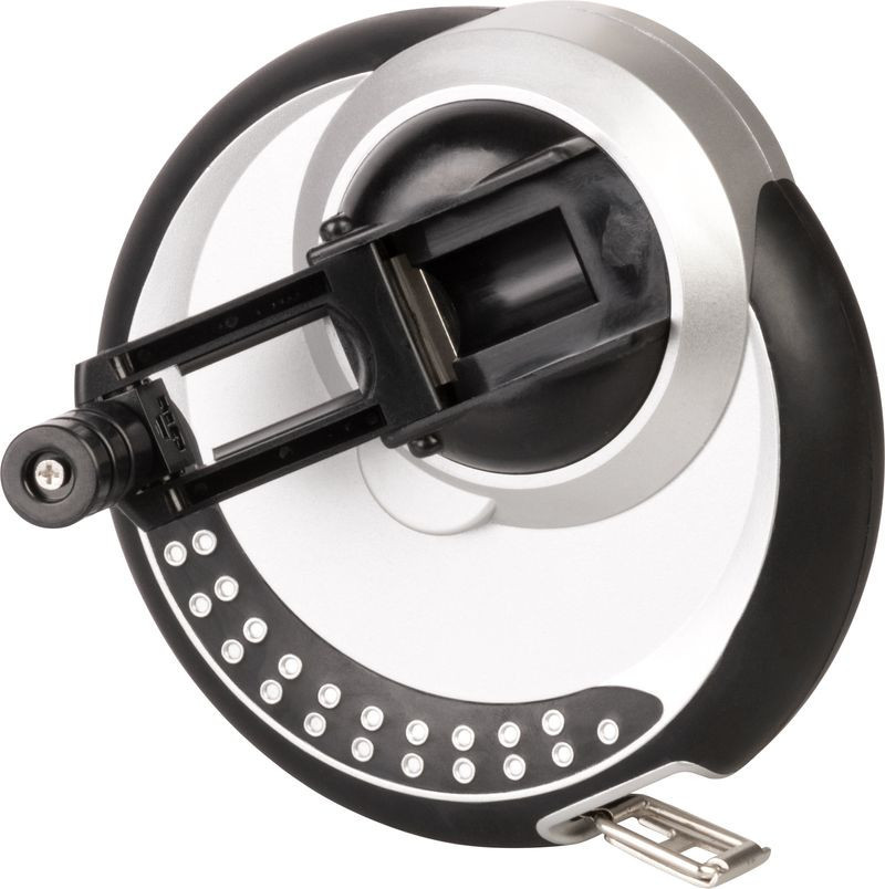 Az erős acélszalag kevésbé nyúlik, és hosszú távon is megtartja pontosságát, ezért ideális alapanyag-mérésekhez vagy telekhatárok kijelöléséhez. A tokba épített, visszaforgatható hajtókar csúszásmentes markolattal bír, így kesztyűben sem csúszik meg a kézben. A fekete-ezüst dizájn jól látható, a fehér mérőosztás pedig gyors leolvasást tesz lehetővé még gyenge fényviszonyok között is. Kompakt, mindössze 0,6 kg-os tömege miatt hosszabb munkanapokon sem fárasztó a használata.