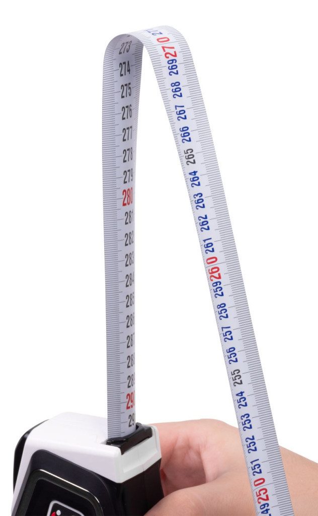 Az ergonomikus, csúszásmentes borítás hosszan tartó munkánál is kényelmes fogást biztosít, miközben a 27 mm-es extra széles szalag nagy betűmérettel készült skálázása messzebbről is könnyen leolvasható. A mágneses kampó megspórolja a második kezet, hiszen magától a helyén marad, az Auto STOP funkció pedig felgyorsítja a munkafolyamatot: kihúz, mér, leolvas – mindezt egyetlen gombnyomás nélkül. Robusztus felépítésének hála a szalag nem csavarodik, nem törik, és hosszú távon is megőrzi pontosságát.