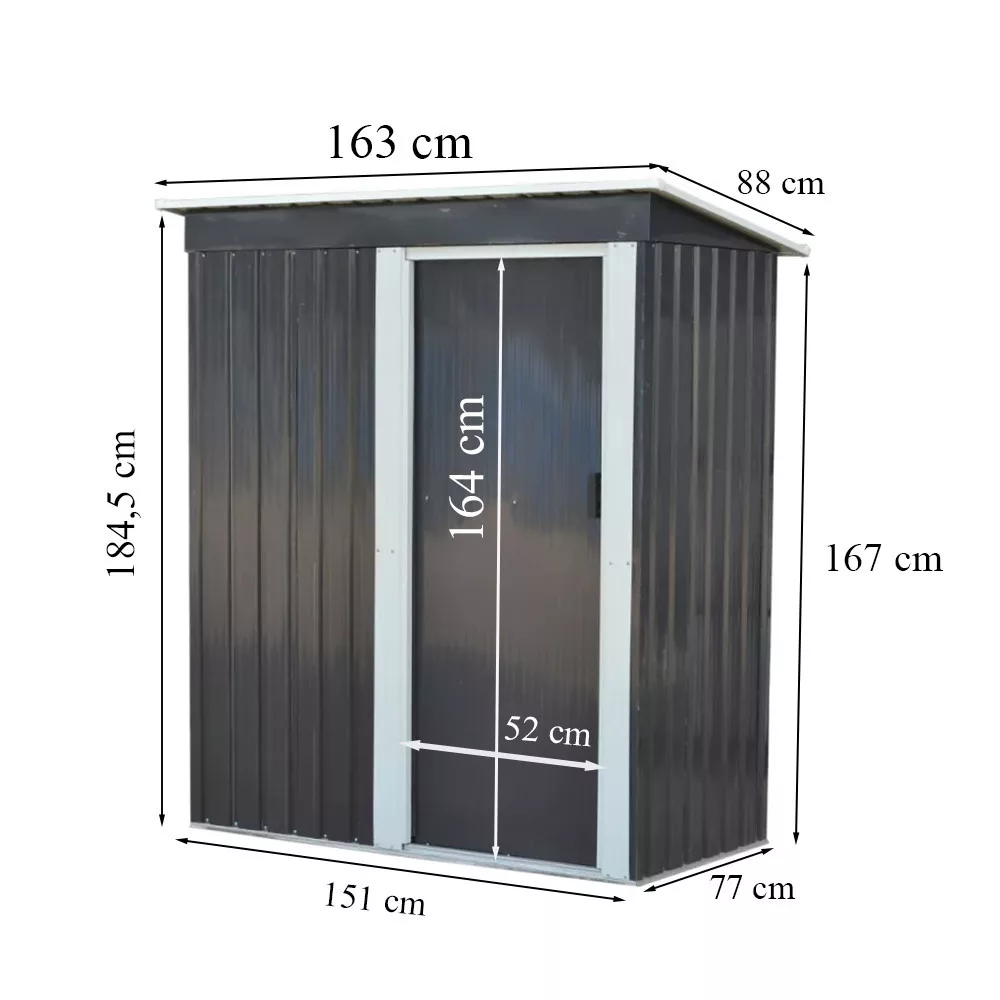 A kerti szerszámtároló ház anyaga 0,27 mm vastagságú cinkacél colorbond, amely garantálja a tartósságot és a hosszú élettartamot. A szerkezet 0,6 mm vastag cinkacél kerettel van megerősítve, amely növeli a stabilitást és a biztonságot. Az anyag rozsdaálló, így az épület kívülről is megőrzi esztétikus és vonzó megjelenését. A kerti szerszámtároló ház összeszerelése egyszerű és könnyen kivitelezhető.