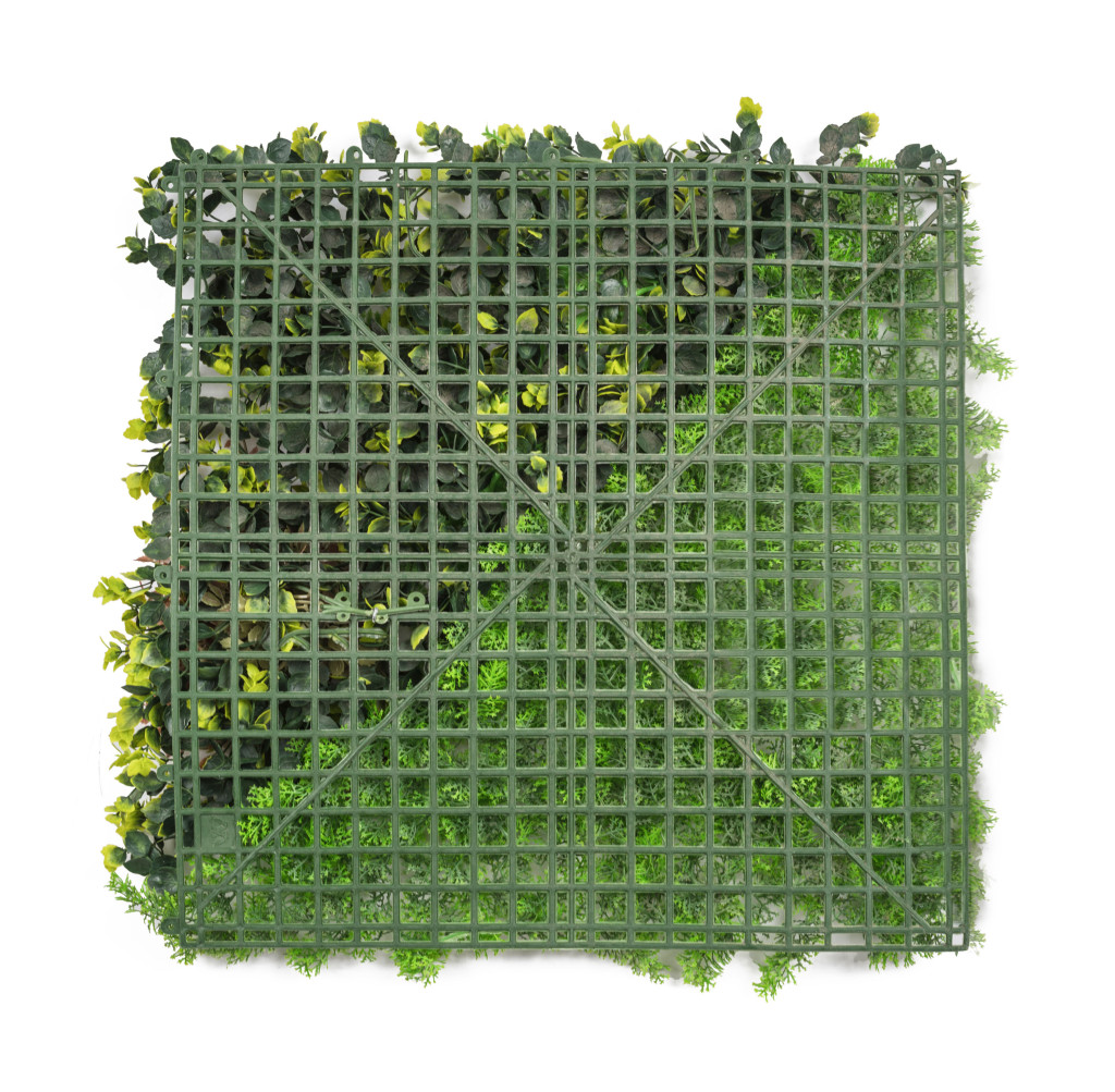 Egy panel, rengeteg lehetőség. Használja érdekes beltéri dekorációként, alakítson ki zöld falat a nappaliban, természetes sarkot az erkélyen, vagy takarja el a régi kerítést. Az 50 x 50 cm-es panelek könnyen kombinálhatók nagyobb egységekké a moduláris raszterrendszernek és a hátoldali rögzítőknek köszönhetően. Megoldható fúrás és szerszám nélkül, elég egy kábelkötöző vagy egyszerű kampó. Akár betonfalra, fa burkolatra vagy gipszkartonra rögzíti, az eredmény mindig tökéletes lesz. Kisebb méretre van szüksége? A panelt egyszerűen méretre vághatja.
