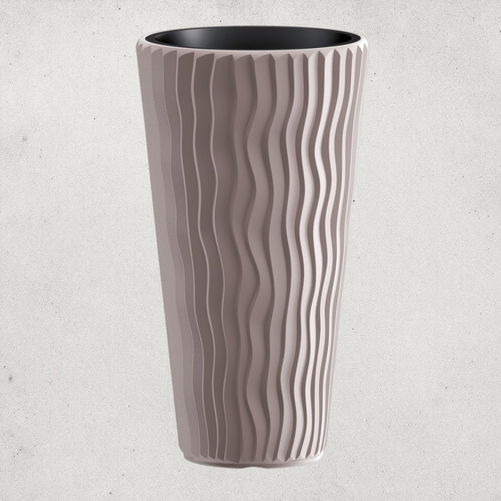 Élénk mokka árnyalatával és markáns, függőleges hullámrajzolatával a Prosperplast SANDY Slim 400 virágcserép azonnal eleganciát csempész otthonodba vagy teraszodra. Magas, karcsú testének köszönhetően látványos fókuszpontot hoz létre, miközben minimális helyet foglal. A kivehető belső betét megkönnyíti az ültetést, csökkenti a virágföld mennyiségét, és biztosítja a gyökerek egészséges levegőzését, a 1,91 kg-os tömeg pedig stabilitást ad szeles időben is.