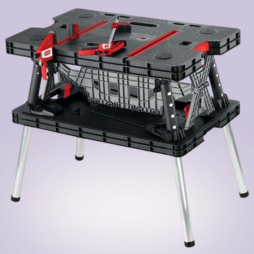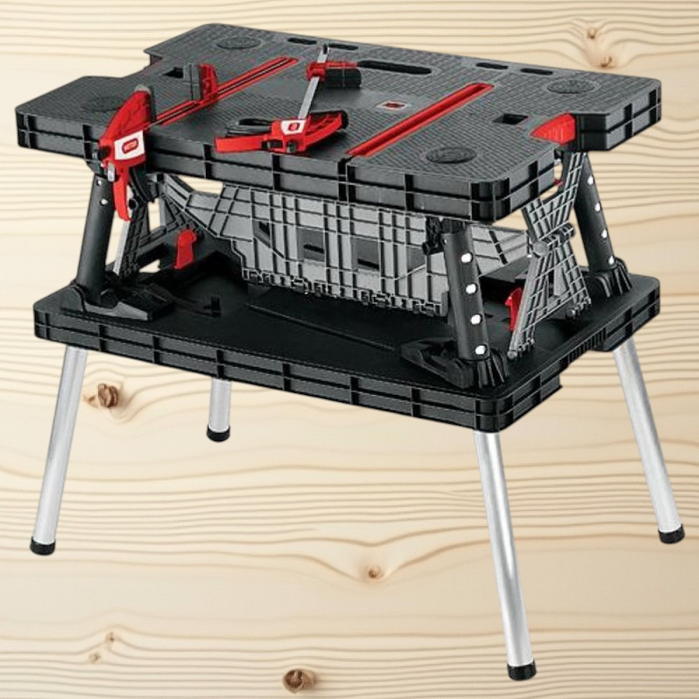 A sokoldalúság és időkímélés páratlan párosa: ezzel a munkaasztallal nem kell kompromisszumot kötnöd. A pillanatok alatt nyitható zárszerkezet gyorsan munkára kész helyzetbe hoz, a csúszásmentes felület stabilan tartja az anyagot, míg a két, asztallapba süllyeszthető 30 cm-es bilincs precízen rögzít. Könnyű, mégis robusztus felépítésének köszönhetően egyszerre szolgál hobbi barkácsolókat és profi szakembereket, legyen szó helyszíni szerelésről vagy garázsmunkáról.